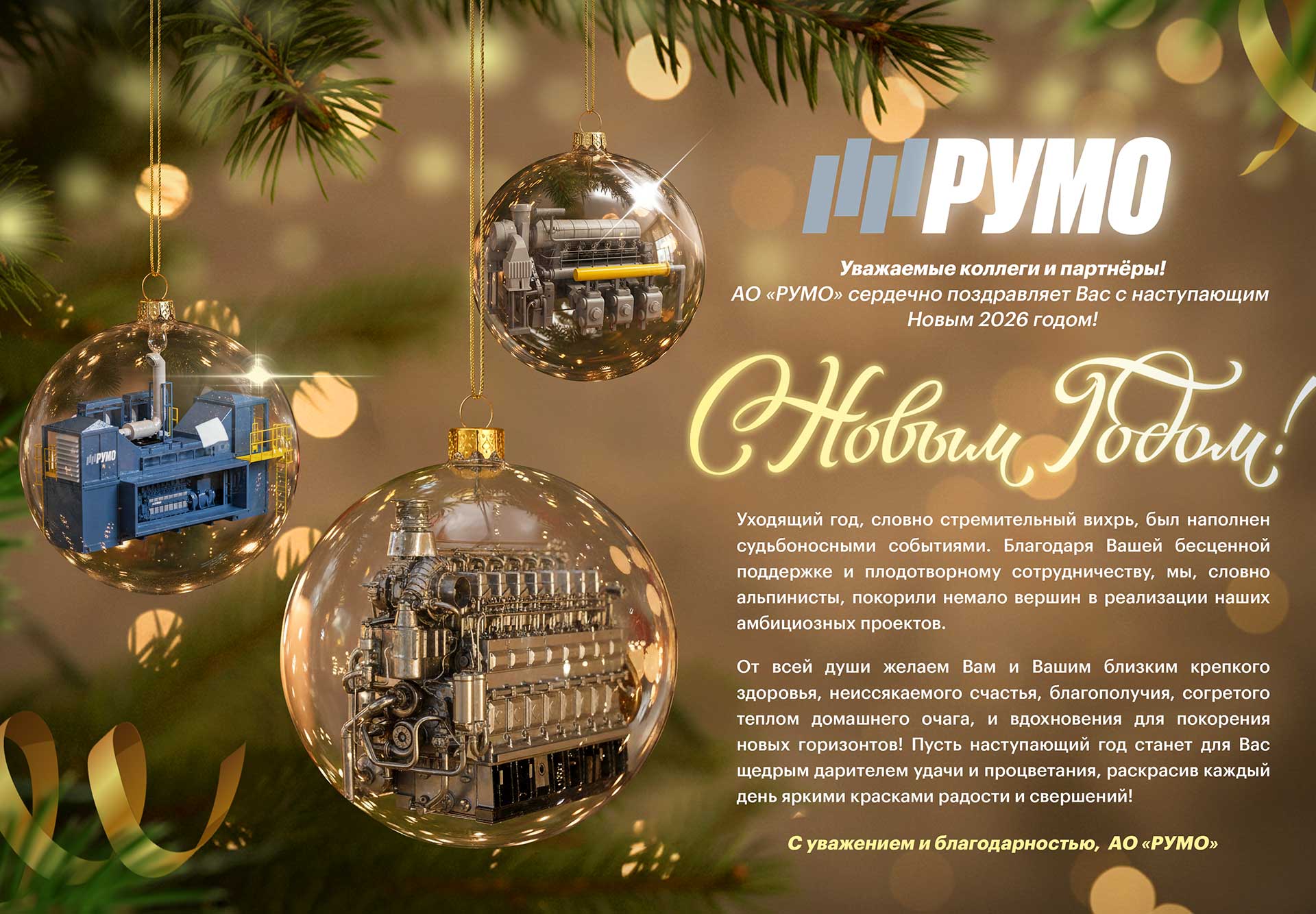 Акционерное общество «РУМО» (АО «РУМО») основано в 2018 году на базе предприятия ОАО «РУМО» (ранее «Двигатель революции» и «Фельзер и Ко»), существующего с 1874 года. Завод специализируется на разработке, производстве, поставке и сервисе газомотокомпрессоров, поршневых компрессоров и агрегатов на их базе, среднеоборотных дизельных, газодизельных и газопоршневых двигателей внутреннего сгорания от 750 до 1200 кВт (до 1600 кВт перспективно) и электростанций на их базе, полнокомплектных газоперекачивающих агрегатов, их блоков и систем.
